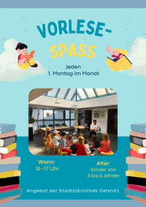 - Vorlesespaß (jeden 1. Montag im Monat,16-17 Uhr)